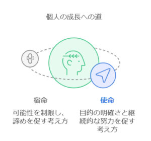 1. 宿命と使命の違い ・ 宿命とは、「自分の限界を決めてしまう考え方」を指します。 ・ 宿命に囚われると、「自分はこんなものだ」と諦めてしまい、成長が望めません。 2. 使命 … 続きを読む 宿命本能と使命本能の違い